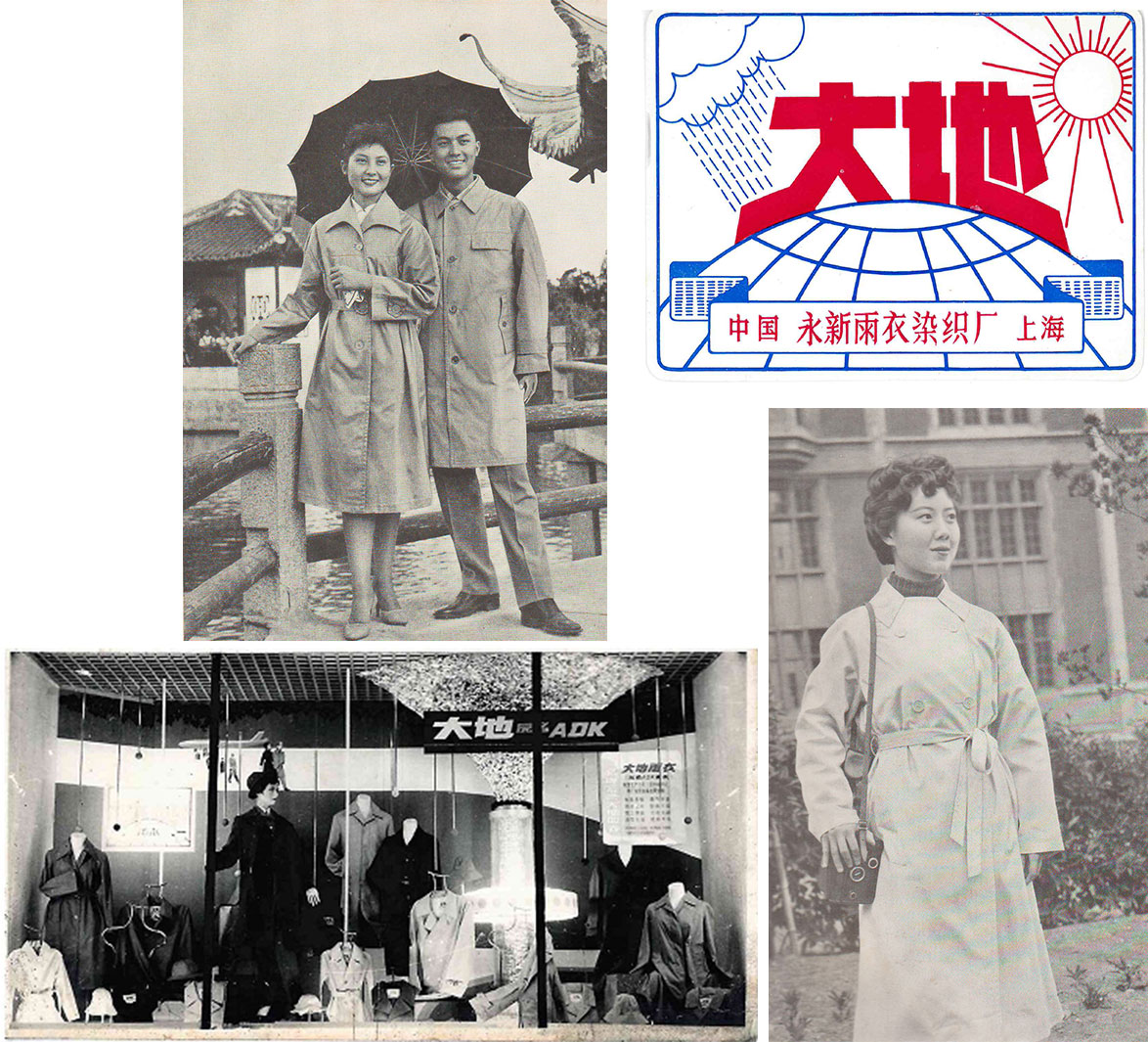 1953年3月17日,永新廠在新聞日報上公開 刊登征求企業中文商標命名廣告,上海市靜安區第一中心小學 教員陳宏鈞先生以意為“譽滿全球、名聞大地”的“大地”牌脫穎而出, 同年7月2日,永新廠正式注冊使用“大地牌”商標。 成為新中國最早的風雨衣品牌,也是新中國成立后的第一例服裝注冊商標。